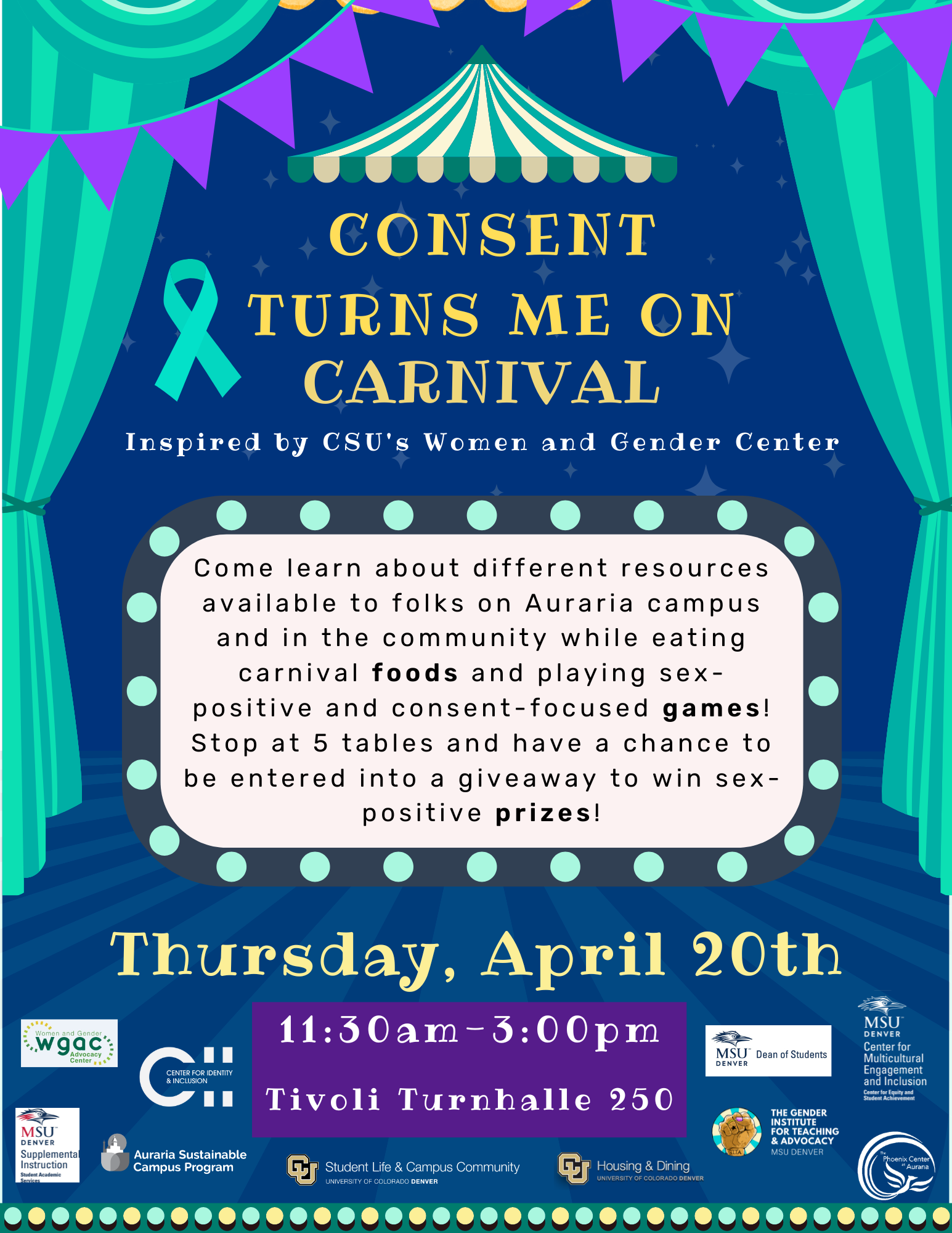 Come learn about different resources available to folks on Auraria campus and in the community while eating carnival foods and playing sex-positive and consent-focused games!